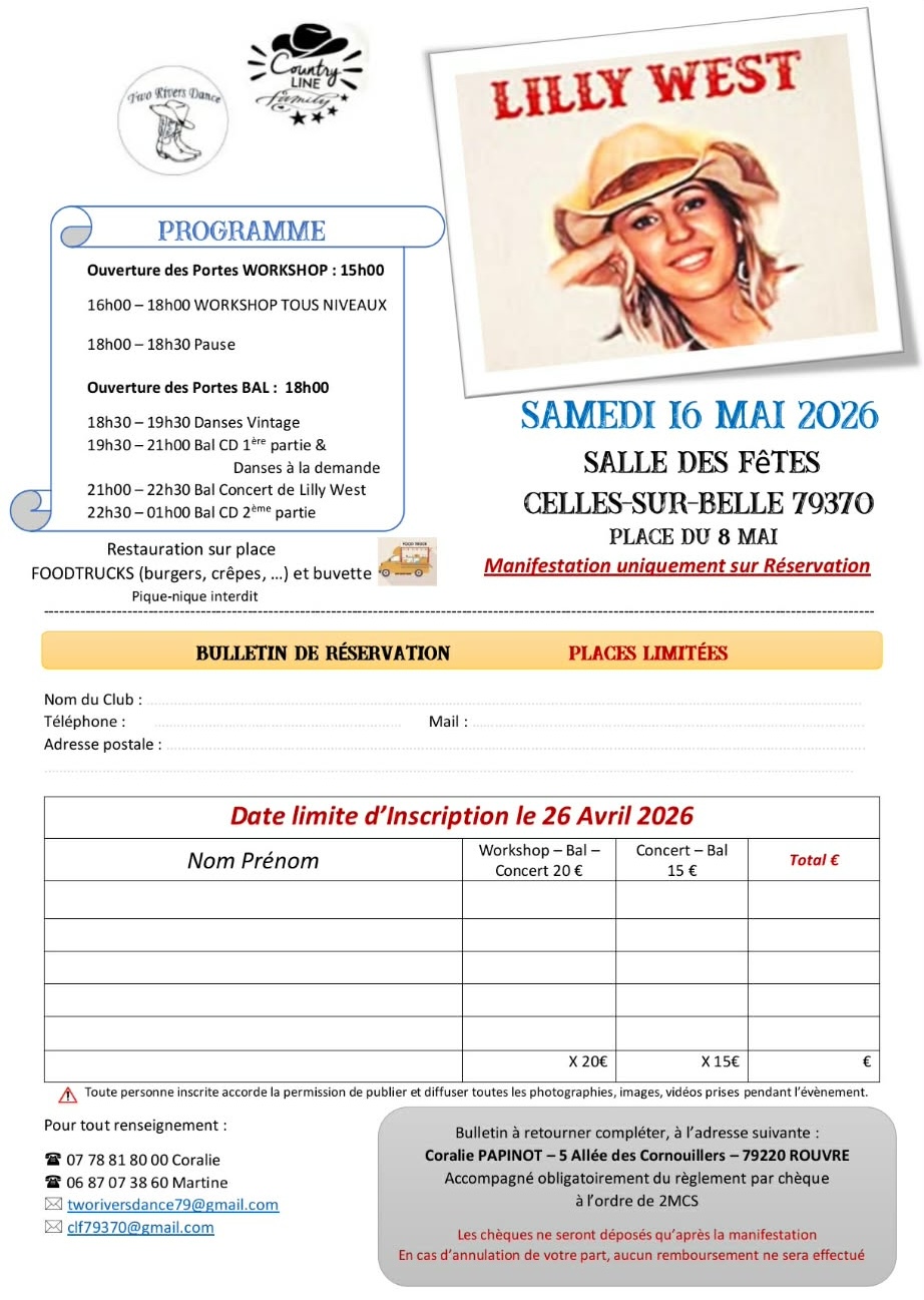 Renseignements et Réservations (obligatoires) au 06 87 07 38 60 ou par email à clf79370@gmail.com